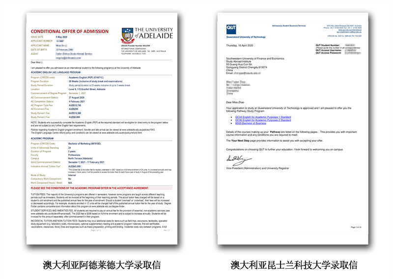 本科项目部分录取offer展示