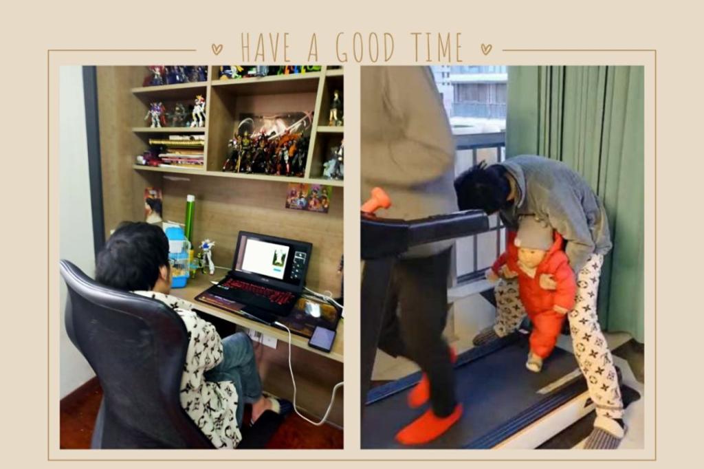 除此之外,王博彦还主承担起照顾弟弟的工作,一有空闲的时候,他就陪弟弟学走路,带弟弟玩玩具。这次的疫情,让王博彦更加意识到亲情的可贵,家庭的重要。以前是从父母那里得到爱,现在也要把这份爱传递给亲爱的弟弟。学习的闲暇之余他还定时健身。虽然不能去外面运动,但是在家的跑步机上还是可以充分锻炼的。