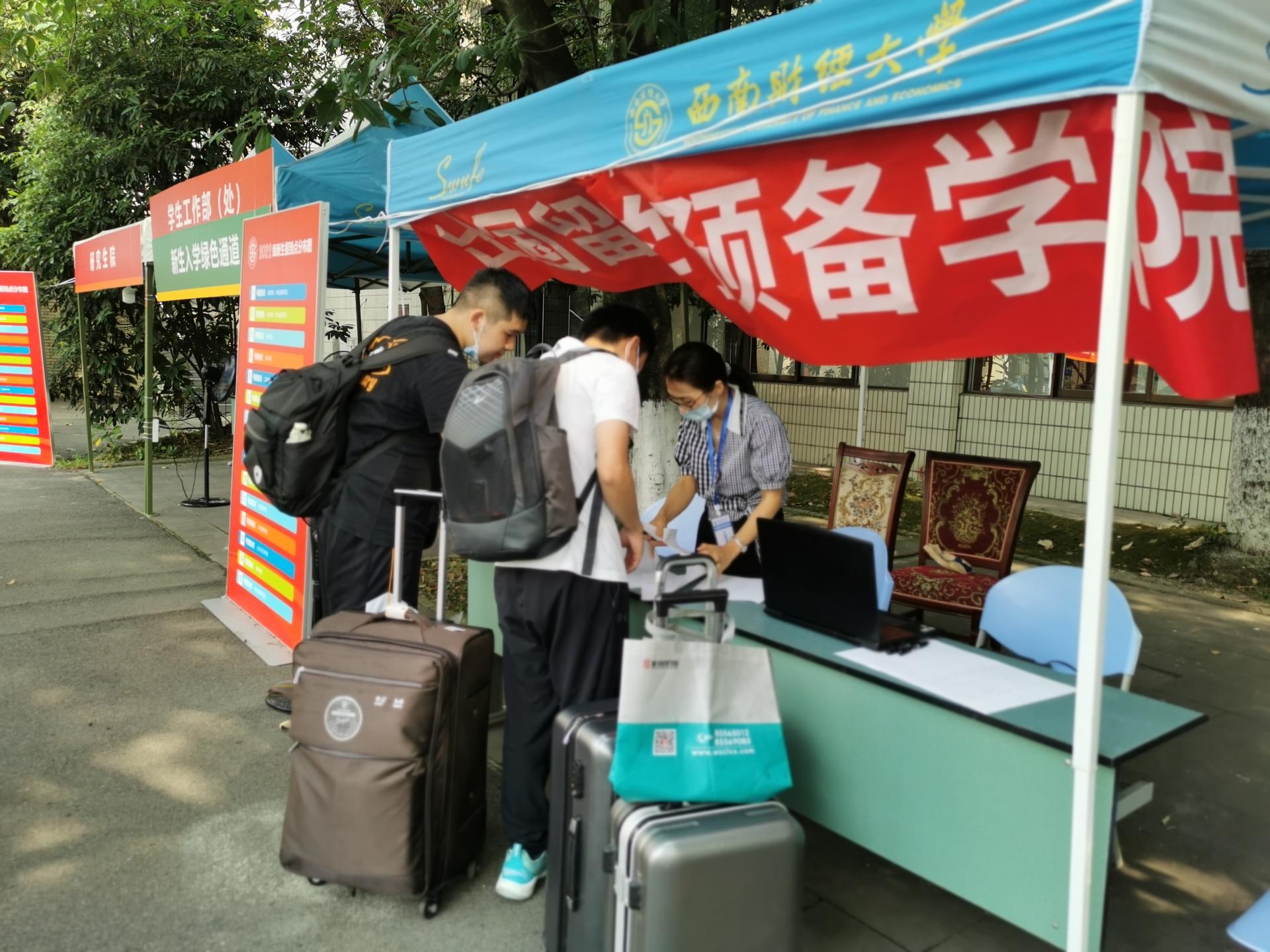 在工作人员的带领下,经过各项手续流程,新生们顺利进入到宿舍区域,在老师的引导下领取寝室钥匙,开始全新的西财生活。