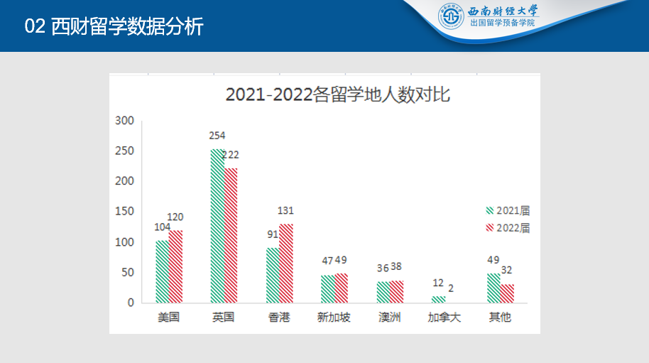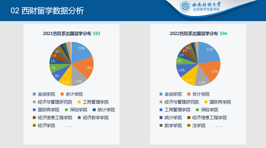 在这一部分,卢老师围绕国际形势、海外疫情情况、签证办理等各个方面的相关政策与现状进行了细致的分析,通过详细的数据向同学们展示了各院系的留学情况分布。