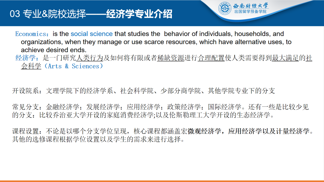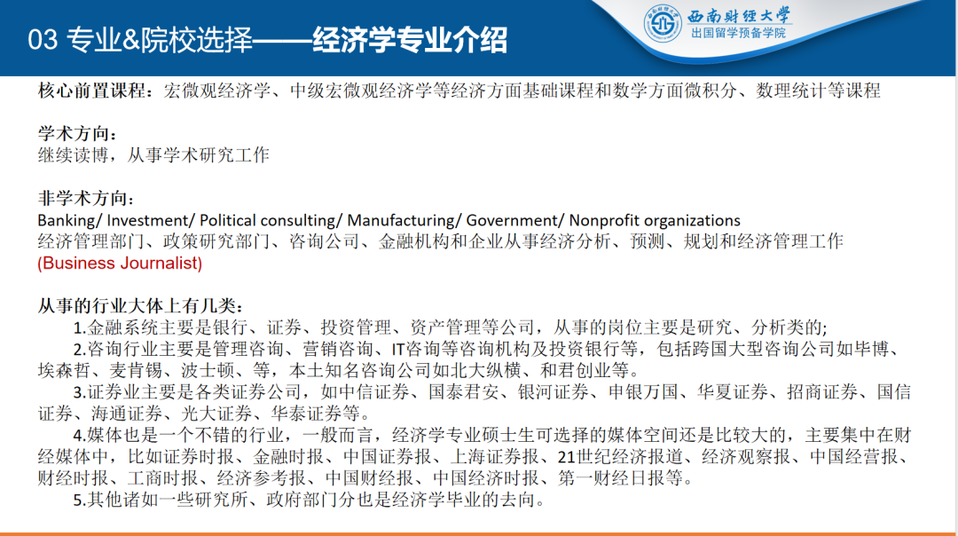 学生,卢老师重点讲解了几个经济学相关留学专业。